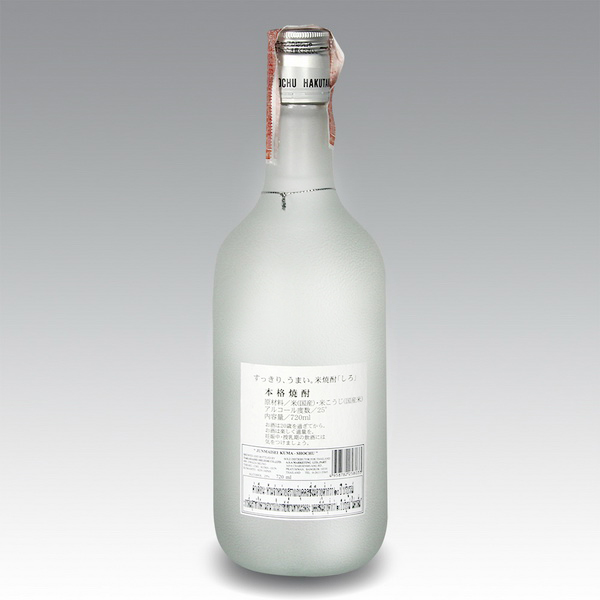 HAKUTAKE SHIRO is the best-selling rice shochu in Japan. Made from carefully selected rice and pure mineral-rich local water. Light and clean. Exactly how rice shochu should taste.